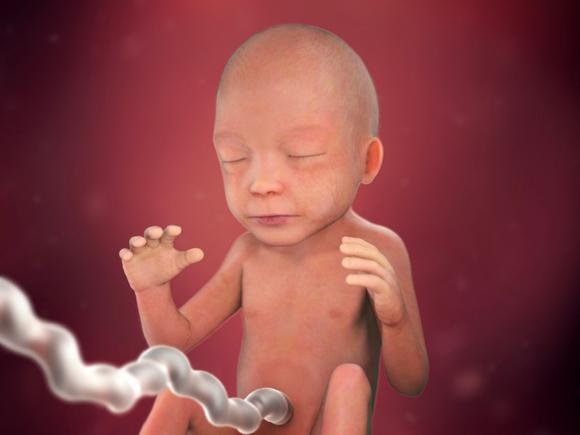 Váží téměř půl kila a začíná vypadat jako miniatura novorozence. Jeho obličejové rysy jsou zřetelnější, v dásních začínají růst zoubky a oči má otevřené, v tuto chvíli ale duhovky miminka stále nemají pigment pro určení barvy. Tělo má pokryté jemnými chloupky a jeho kůže má hluboké vrásky, ty zůstanou do té doby, než mu je plně vyplní tuk.