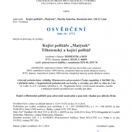 - Kojicí polštáře Matýsek, jsou vyrobeny z nejkvalitnějších materiálů, které splňují přísná kritéria.