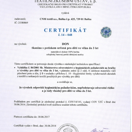 - Ne jenom materiály, z kterých vyrábíme, mají atesty, ale dokonce i naše výrobky získali certifikáty pro děti do 3 let.