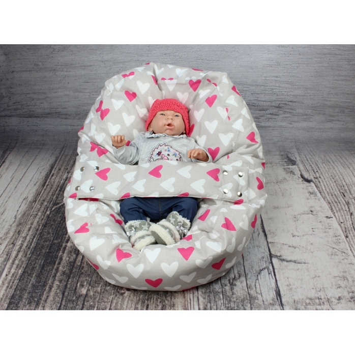 Relaxační polštář, pelíšek pro miminko, se snímatelným potahem, 100% bavlna, SRDCE RŮŽOVÉ