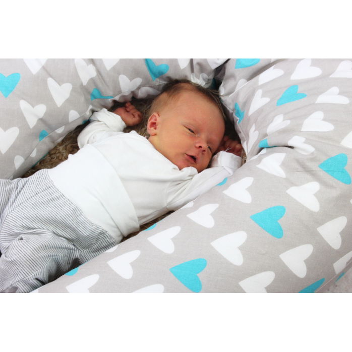 Kojící polštář STANDARD 170 cm + snímatelný potah,SRDCE MODRÉ 100% bavlna
