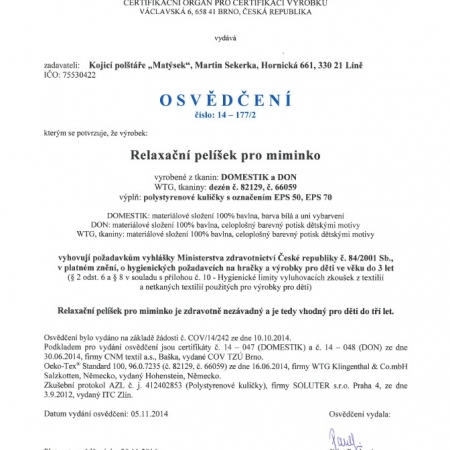 - Kojicí polštáře Matýsek, jsou vyrobeny z nejkvalitnějších materiálů, které splňují přísná kritéria.