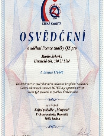 JSME DRŽITELI ZNÁMKY ČESKÁ A ZARUČENÁ KVALITA