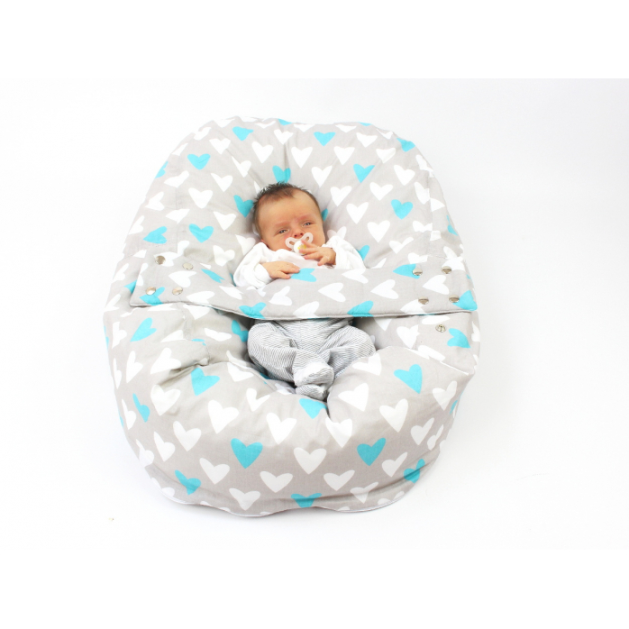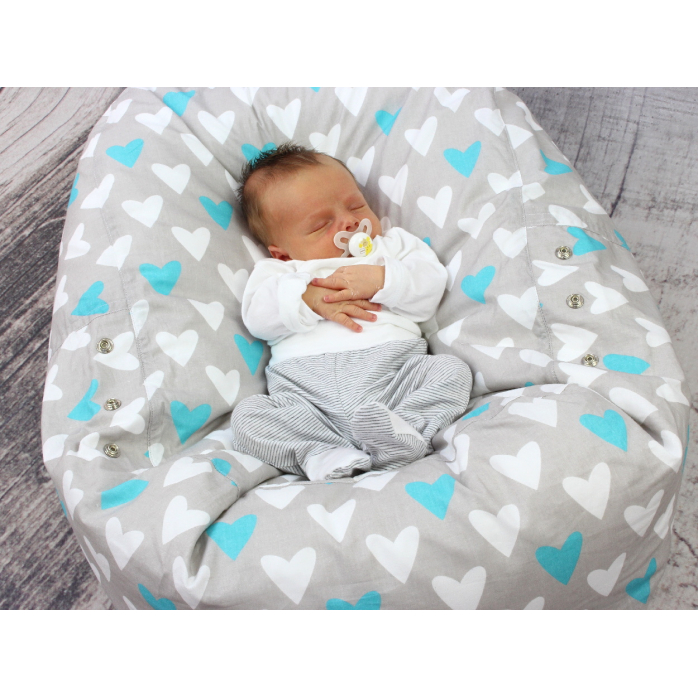 Relaxační polštář, pelíšek pro miminko, se snímatelným potahem, 100% bavlna, SRDCE MODRÉ