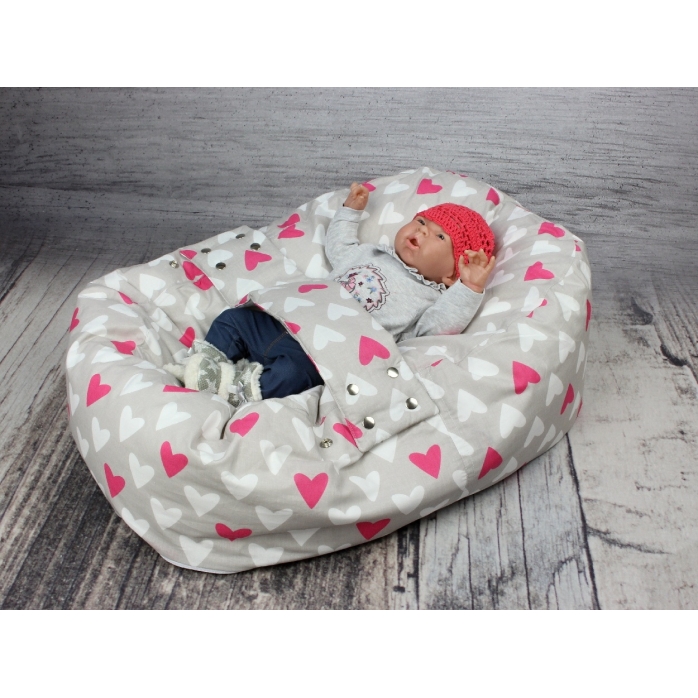 Relaxační polštář, pelíšek pro miminko, se snímatelným potahem, 100% bavlna, SRDCE RŮŽOVÉ